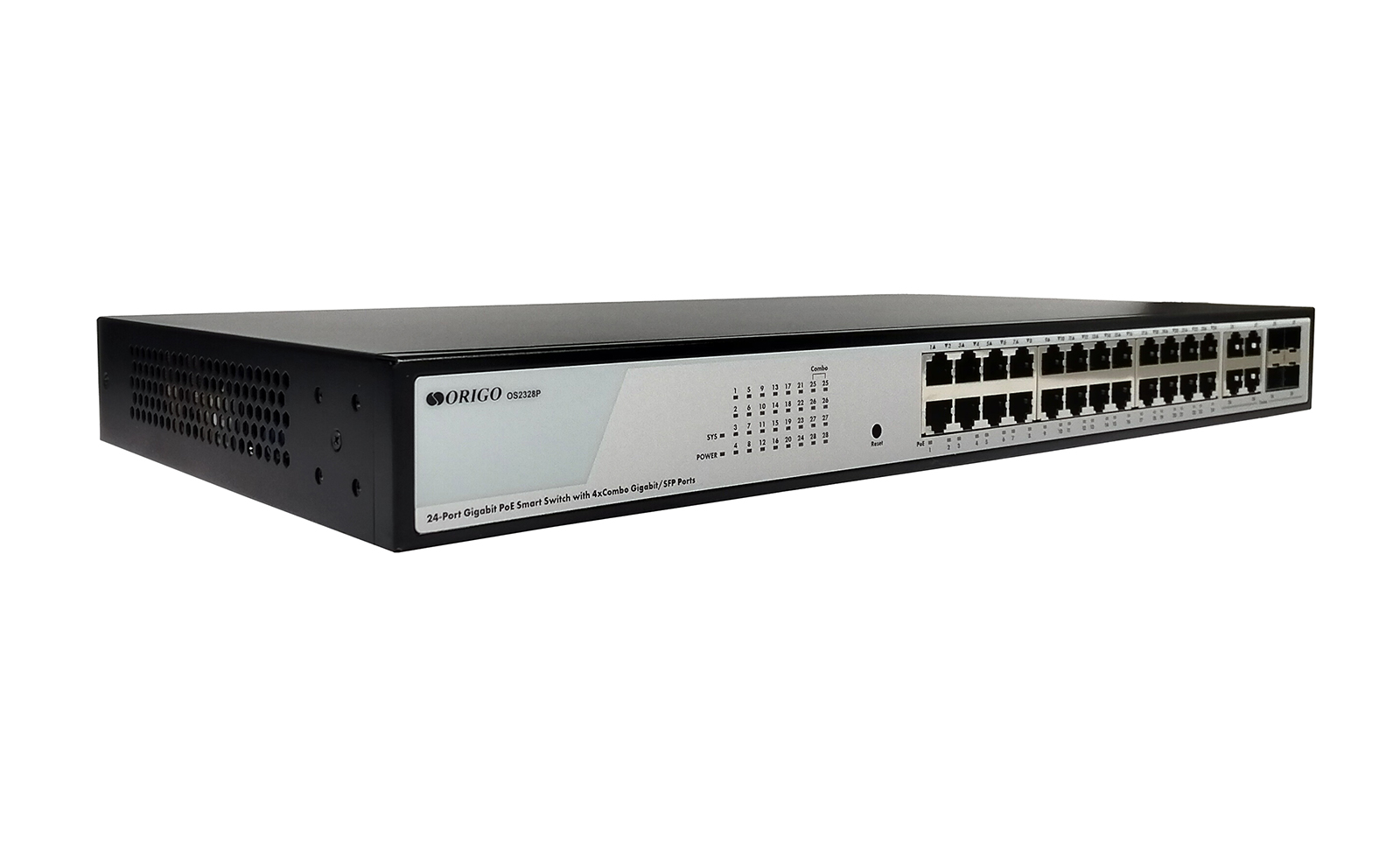 OS2328P/360W – управляемый гигабитный L2-коммутатор с 24 портами PoE+ и 4 комбо-портами GE/SFP.