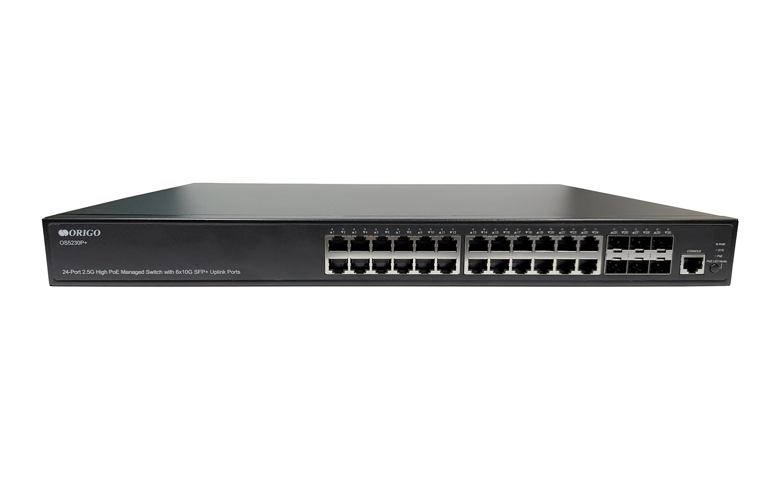 OS5230P+/370W – мультигигабитный управляемый L3-коммутатор  с 12 портами 100/1000/2.5GBase-T PoE++,  12 портами 100/1000/2.5GBase-T PoE+  и 6 портами 10G SFP+.