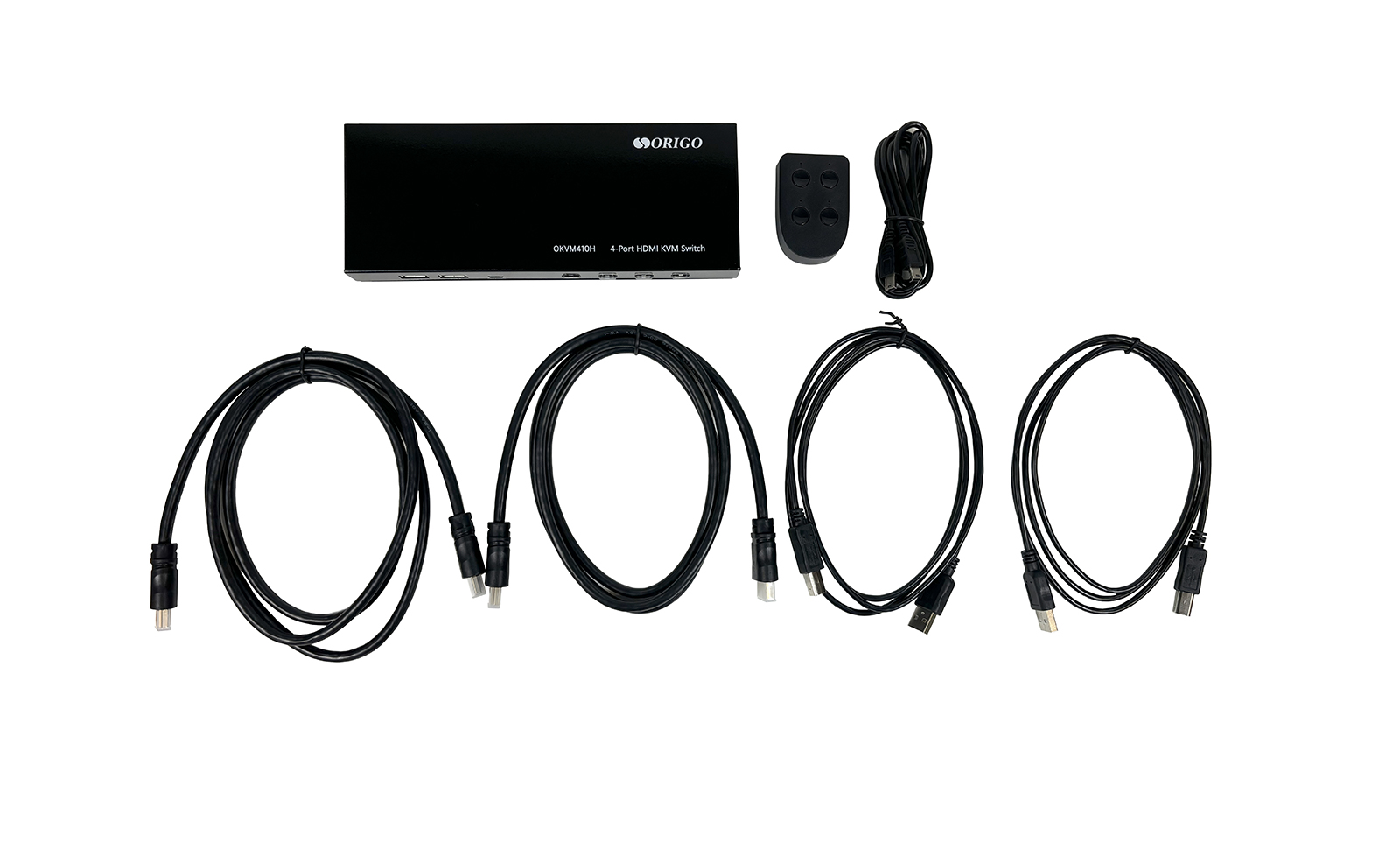 KVM-переключатель ORIGO OKVM410H позволяет управлять 4 ПК с помощью одного монитора, клавиатуры и мыши. Переключатель совместим со стандартом HDMI 2.0 и поддерживает 4K-разрешение (4096x2160/3840x2160 при 60 Гц). Для переключения между ПК используются кнопки на передней панели, горячие клавиши и внешняя кнопка.