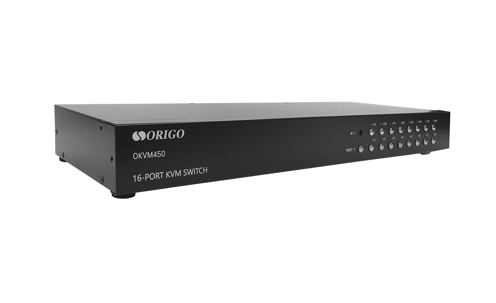 KVM-переключатель ORIGO OKVM450 позволяет управлять 16 ПК с помощью одного монитора, клавиатуры и мыши. Для переключения между ПК используются кнопки на передней панели или пульт дистанционного управления.