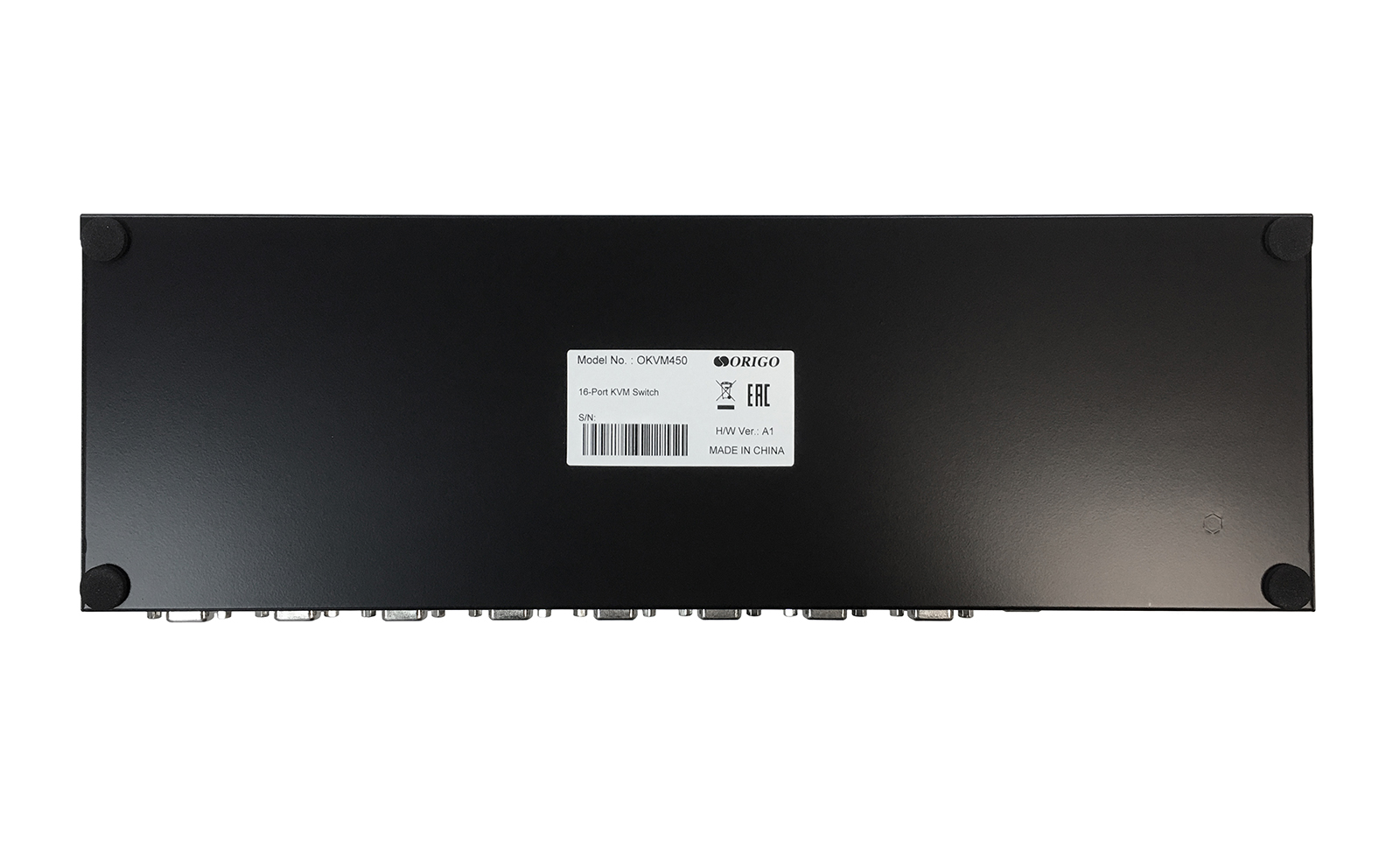 OKVM450 – 16-портовый KVM-переключатель с портами VGA и USB с возможностью установки в 19” стойку.