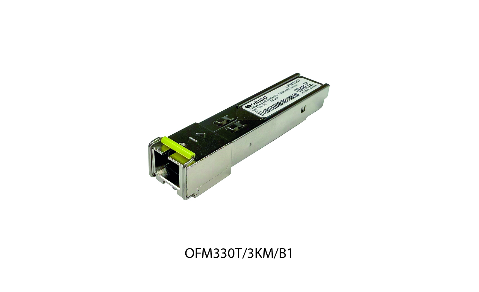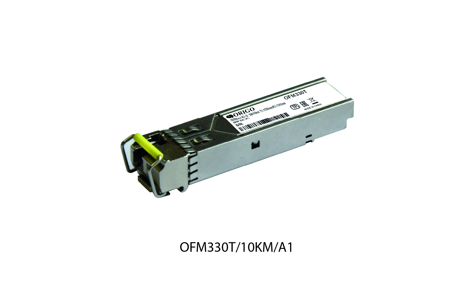 OFM330T – двунаправленный WDM SFP-трансивер с 1 портом 1000Base-BX-D для одномодового оптического кабеля (до 3/10 км).
